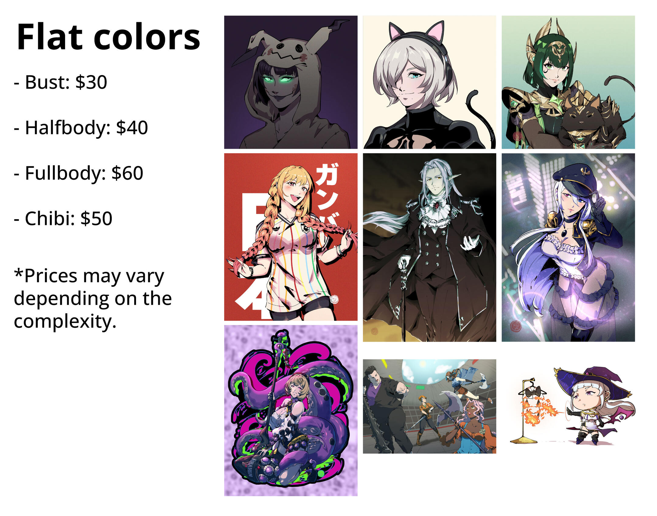 - Sending the payment automatically means that you agree with the Terms of Service! So don’t forget to read it before purchasing.Commission processHalf of the payment or upfront payment → sketch → lineart → basic colors → lights and shadows → finished art preview → half of the payment → i will send to you via Wetransfer link.-Please give me detailed information about what you want in the character, such as pose, body type, clothing, decorations, ornaments, etc. If possible, send visual references so that I can understand what you want.